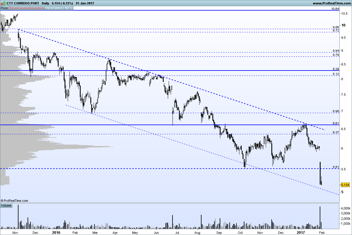 O que não gosto nos CTT » Cotação não respeita suportes na Mega queda. O shorts estão a entrar em força. Fartam-se de vender dívida pública Portuguesa aos particulares, apesar de saberem o que pode acontecer no médio prazo (um haircutzito ao Governo da República). Têm uma Mini banca excessivamente conservadora e sem diversidade de Produtos.