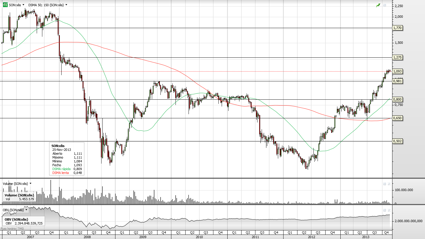 Sonae no medio prazo apresenta uma tendencia de subida com suporte nos 0,981.