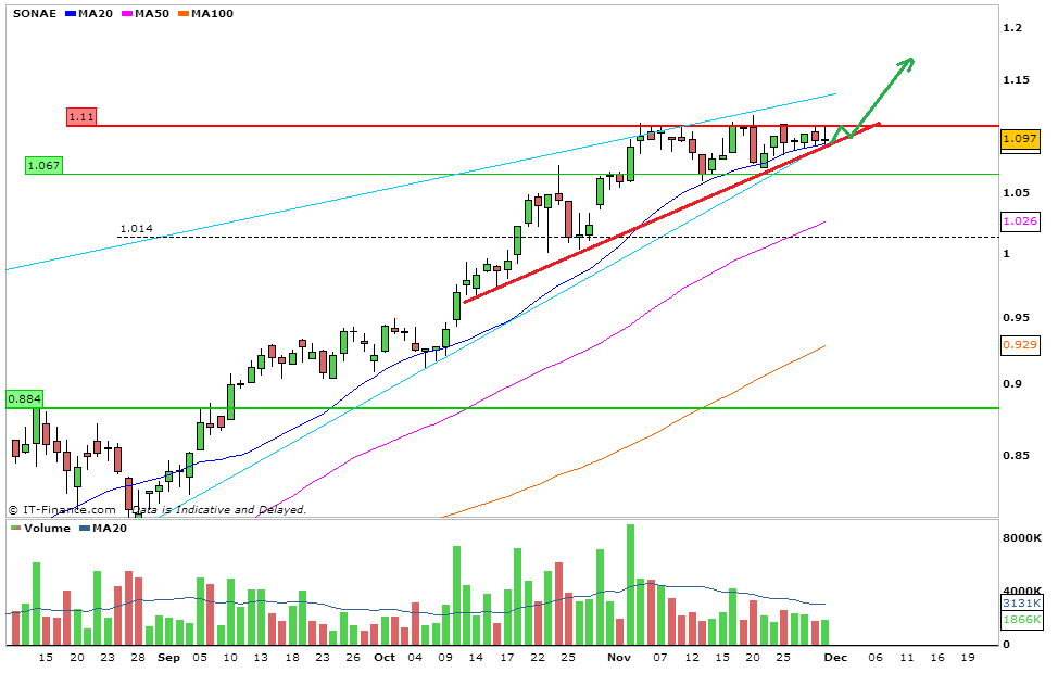 Na minha opiniao Soane esta a deparar-se com uma resistencia de curto prazo nos 1,097 que caso seja quebrada poderá se verificar um boost na ação.