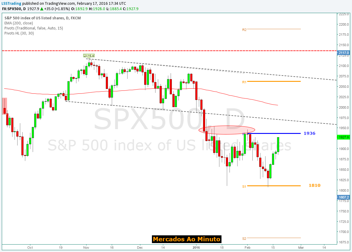 Acredito que sim. Temi pela concretização do padrão depois de se ter anunciado que havia reservas de gasolina suficientes para puxar fogo ao Alasca. Logo depois o Brent e o Crú caíram, o ouro subiu e o S&P vacilou. Apoiado no reanimar do pitróil e no amainar do VIX, paree que o SP quer cumprir aquilo que anda a prometer em termos de análise gráfica.