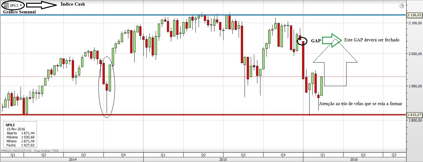 Lembro-me bem que foi o estimado e ilustre JAlves que em tempos me chamou a atenção para olharmos sempre para os gráficos Cash, com o tempo comprovei que os cfd´s não mostram tudo, e que por vezes importantes sinais e figuras acabam por passar ao lado de quem não olha o Cash. Digo isto porque interessantes análises aqui apresentadas pelos participantes têm tido por base os cfd´s e porque julgo que ninguém mencionou o GAP que existe no gráfico semanal do S&P500 Cash, que para mim é algo muito importante.