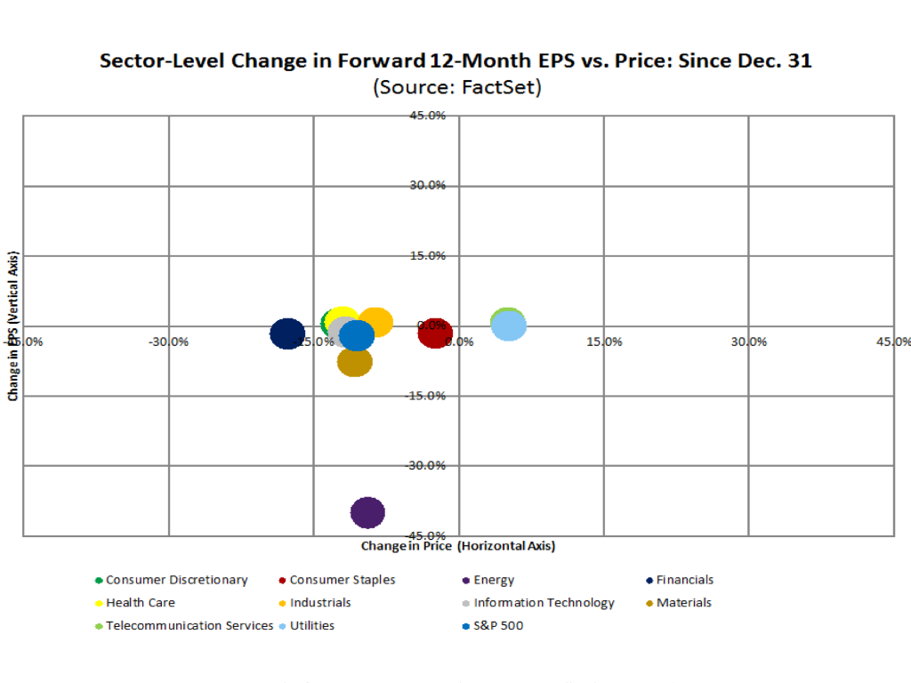 Mas, mais importante ainda, é a forma como o ajustamento têm sido feito neste início de ano. Enquanto que no sector energético esse ajustamento têm sido feito pelo lado dos resultados (quedas do EPS muito superiores à queda de cotação), em boa parte dos restantes sectores tem-se verificado o contrário. Nestes casos, os preços caíram entre os 10% e os 15% em média, enquanto que o EPS se manteve relativamente estável (tendo até subido em alguns casos).