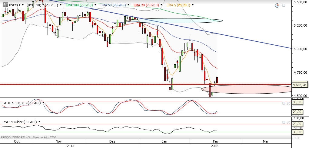 Por isto e pelo exposto em cima (gráfico + estocástico esticado) estou curto no PSI a 4 950 pontos