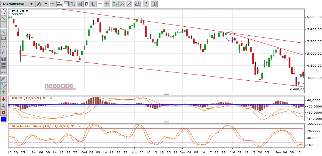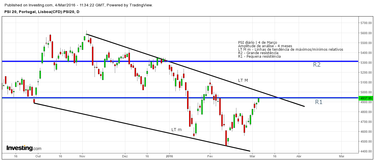 O PSI ainda conseguiu nesta fase ascendente ir perto da MM50 nos 4915 e para já não conseguiu ultrapassar.