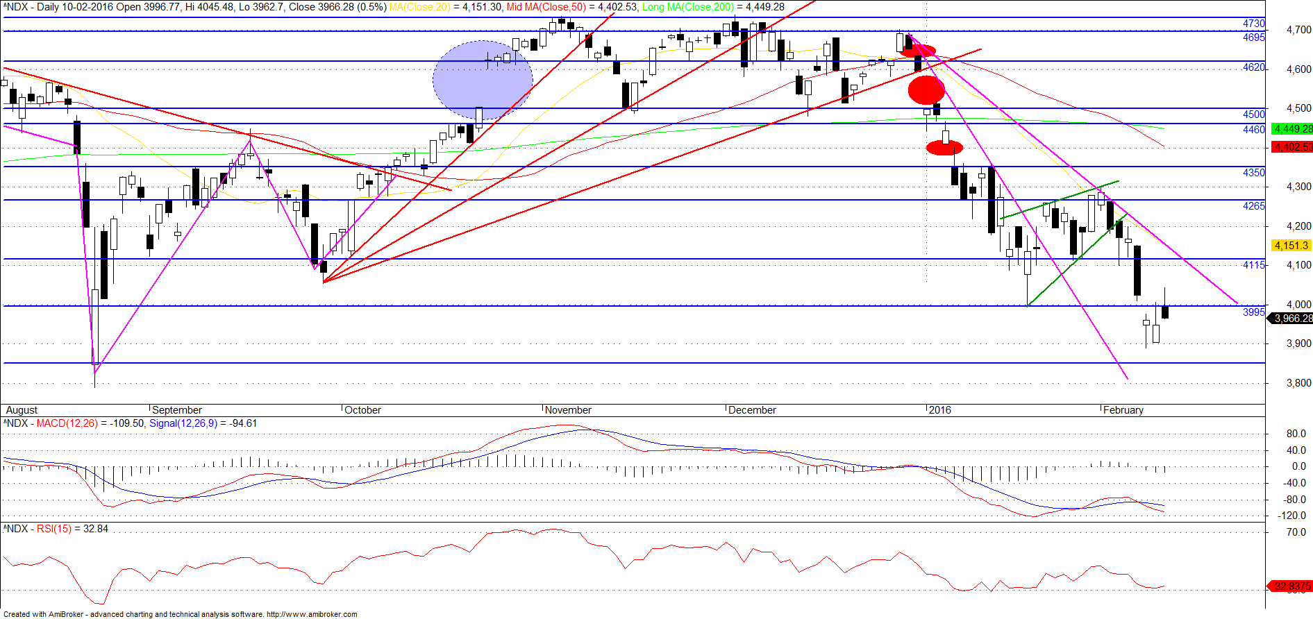 A observação do RSI2, diz-me que no curto curto prazo (próximas sessões), poderá ocorrer um pequeno ressalto, mas possivelmente será sol de pouca dura, pois a relação preço versus MACD, mostra que o MACD está a fazer máximos cada vez mais baixos, sinal que no futuro próximo, poderemos estar a entrar em época de vacas magras.
