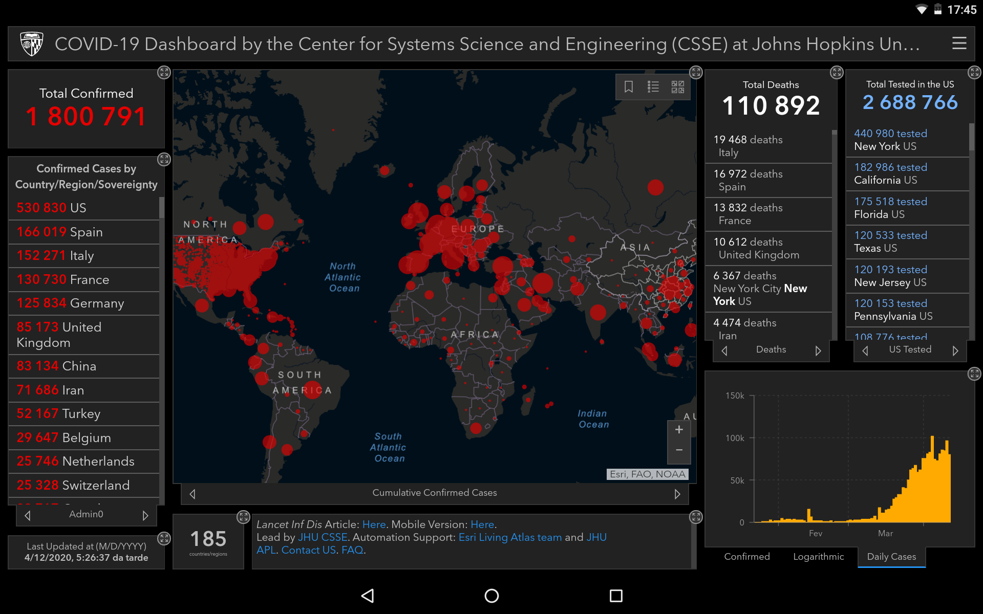 Nota : a % C/T de itália, parece .e muito baixa face à circunstancia de apenas terem sido testados casos à "boca das Urnas " , Parece-me muito baixa ..........Encontras alguma explicaçáo ? Eu tenho ideia que confirmados / testes . daria um valor a rondar quase 30%, mas pode estar a escapar me algum pormenor...............