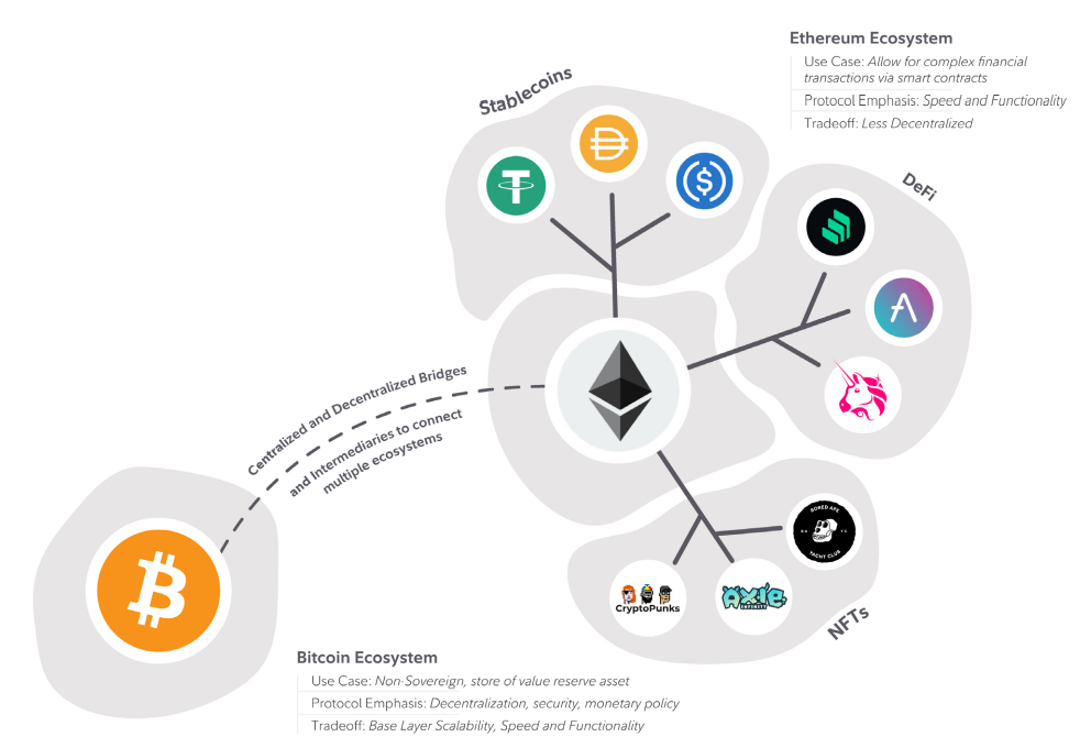There is not necessarily mutual exclusivity between the success of the Bitcoin network and all other digital asset networks. Rather, the rest of the digital asset ecosystem can fulfill different needs or solve other problems that bitcoin simply does not.