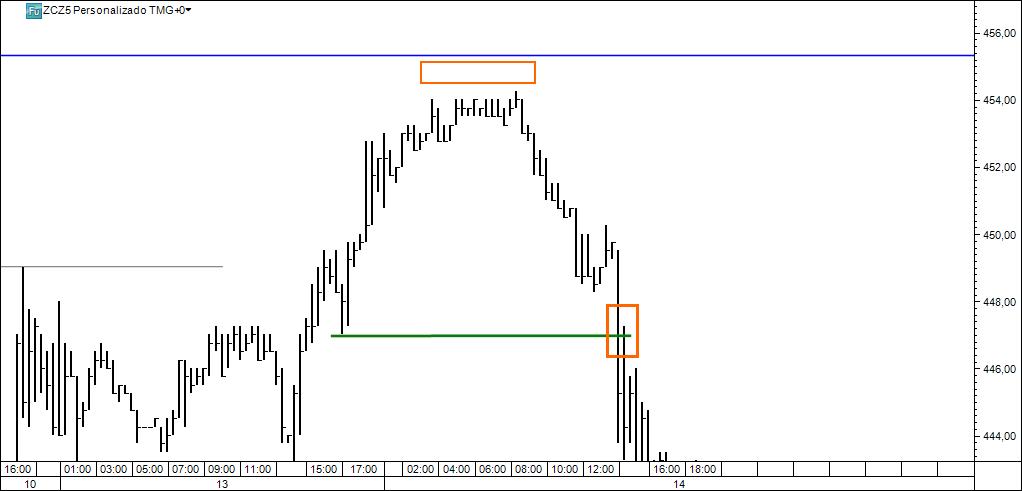 Assustou-se quando viu o target. Stop profit colocada abaixo do último pivot relevante foi atingida. Negócio encerrado.