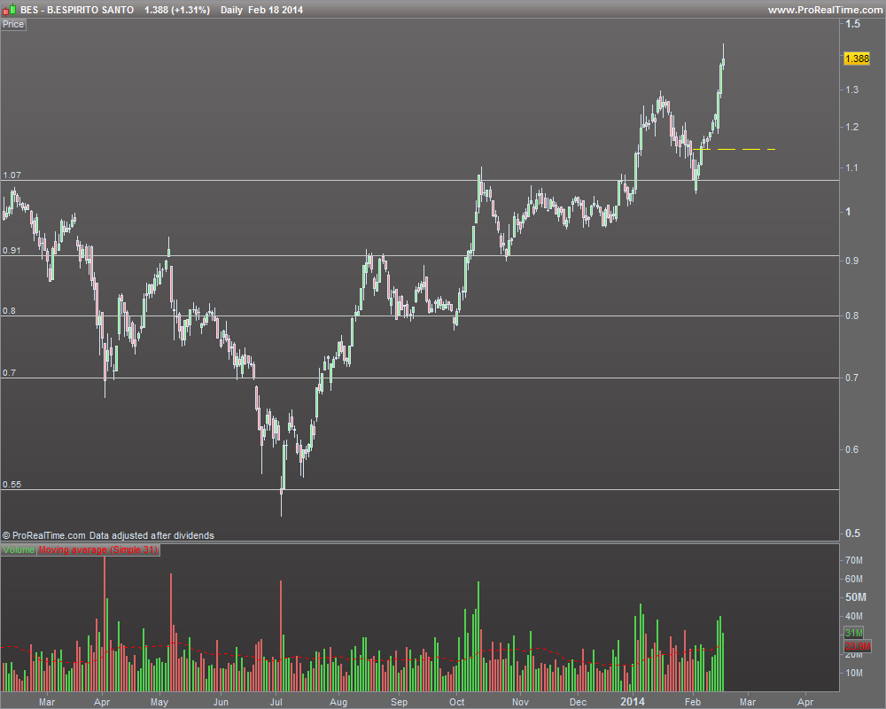 Agora esta do compra BES e vende BCP, não me convence! Eu tenho vindo a acumular os 2 bancos, sem rede (stops...) porque pago para ver a evolução da economia portuguesa através do espalho destes bancos.