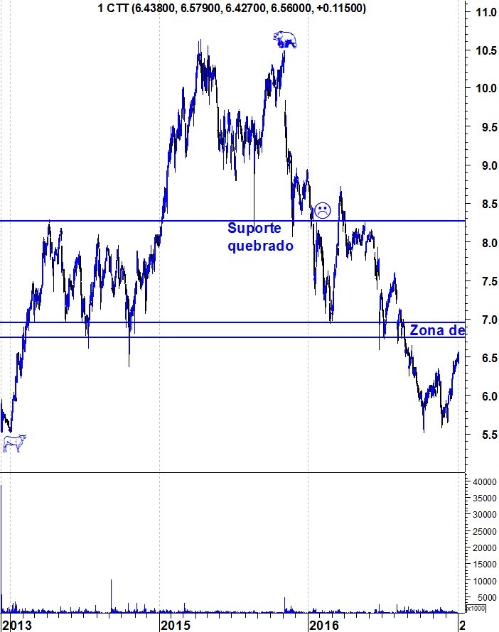 Trend não sei se me fez entender; pois eu passo a explicar: em dois meses os CTT passam de 7,50€ para 5,50€; em três meses somente passou 5,50€ e ainda não chegou ao 6,50€. A conclusão a que chego ainda não a tenho para ela não subir mais e com outra pujança