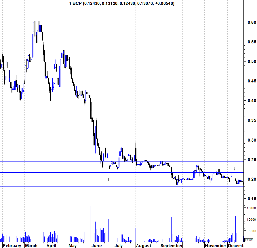 O gráfico é claro, a primeira resistência do BCP encontra-se ali na zona dos 0,18, tal como tinha descrito e mostrado no vídeo que ontem aqui publiquei. Mas daqui a pouco, coloco um gráfico actualizado para que não restem dúvidas.