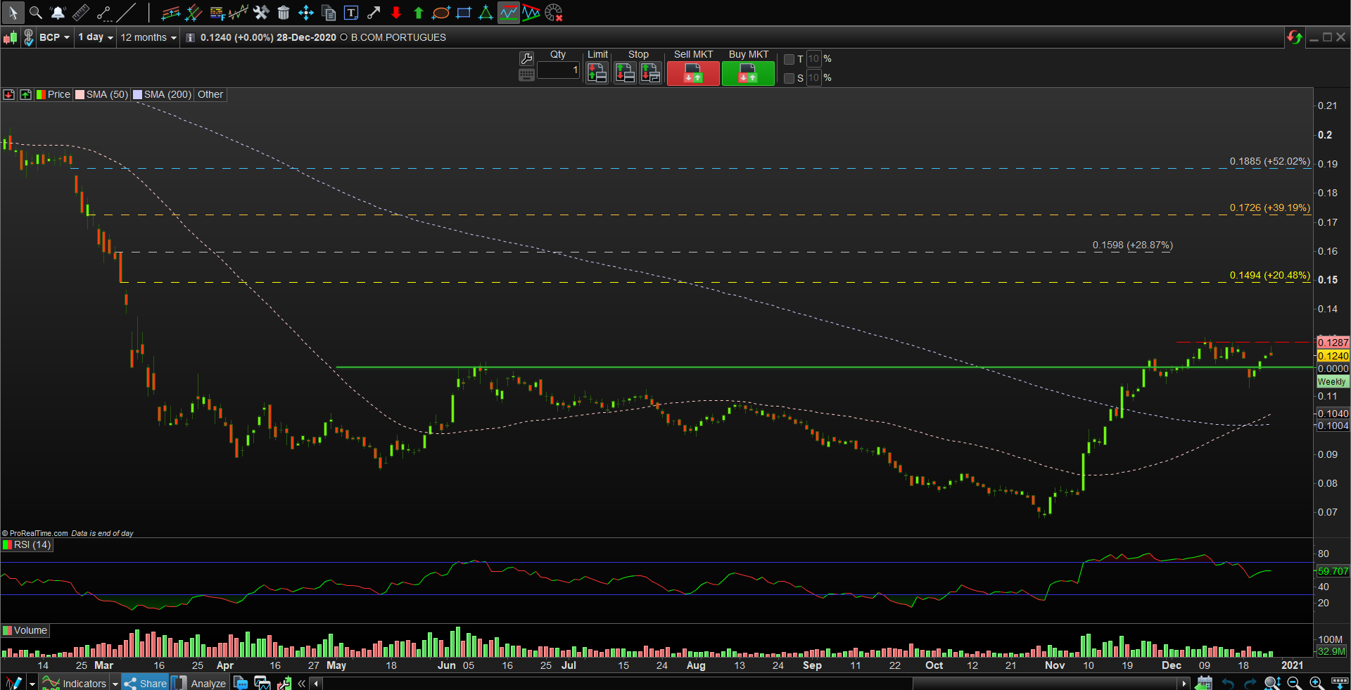 Se por ventura quebrar esse valor e chegar aos 0.19 para fechar o gap de 24/2/2020, aí sim, todas as linhas de tendencia sao ultrapassadas e poderemos ver o BCP nos 0.33 ainda este ano.