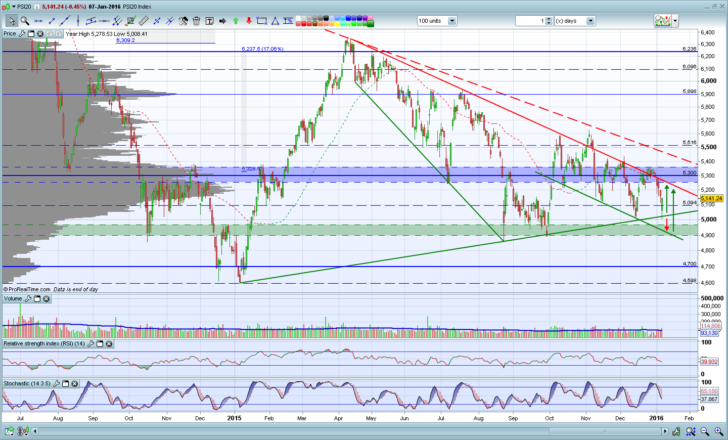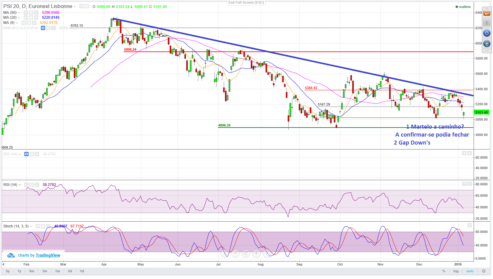 Ulisses Pereira Escreveu:Começo de ano arrasador para os mercados e o PSI não escapa. Os ursos continuam a dominar em todos os horizontes temporais, embora aumentem as probabilidades de um ressalto. Mas que não colocará em causa o domínio dos ursos.