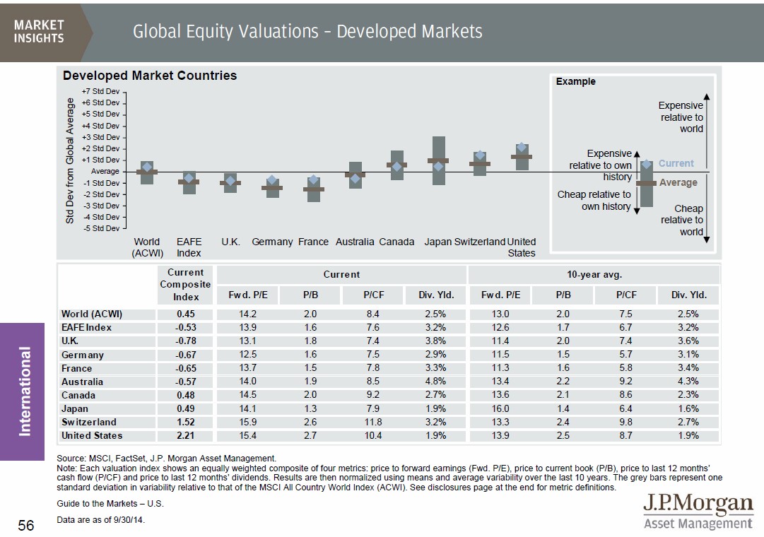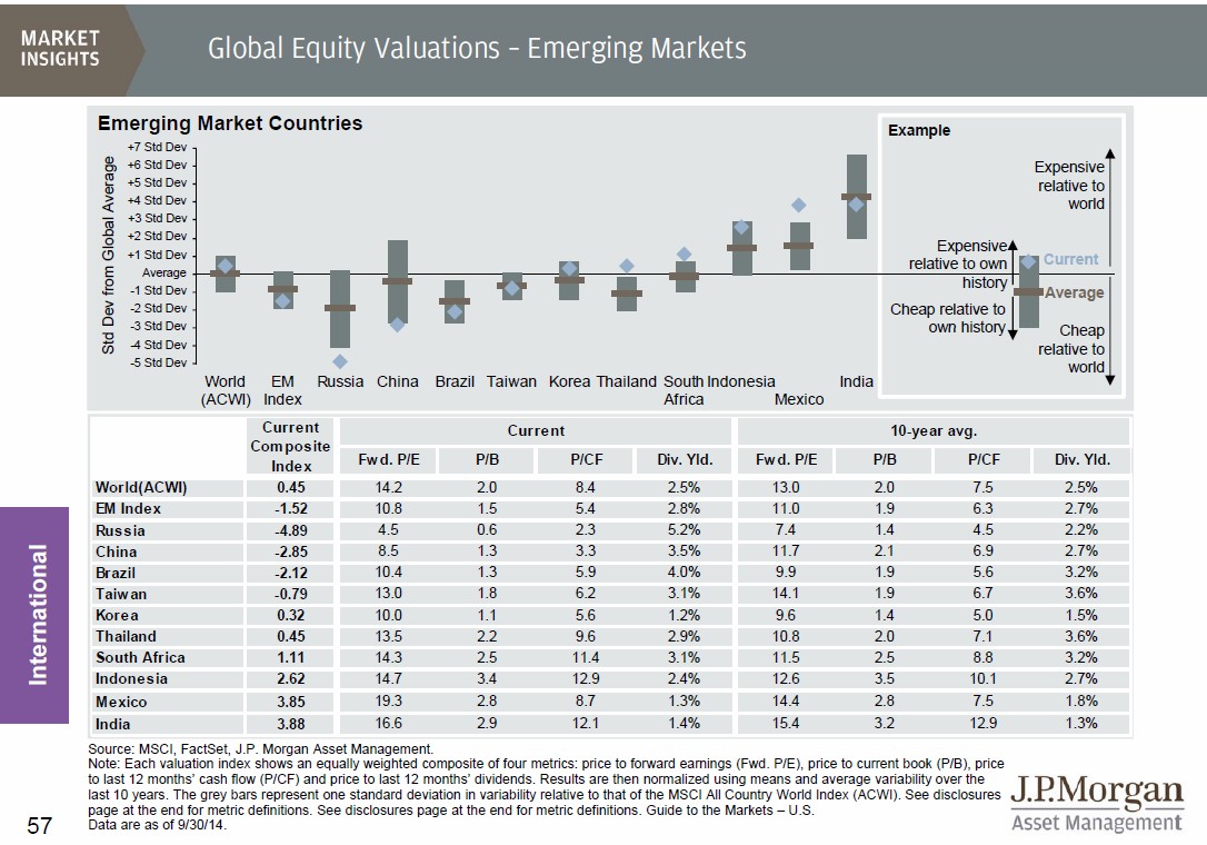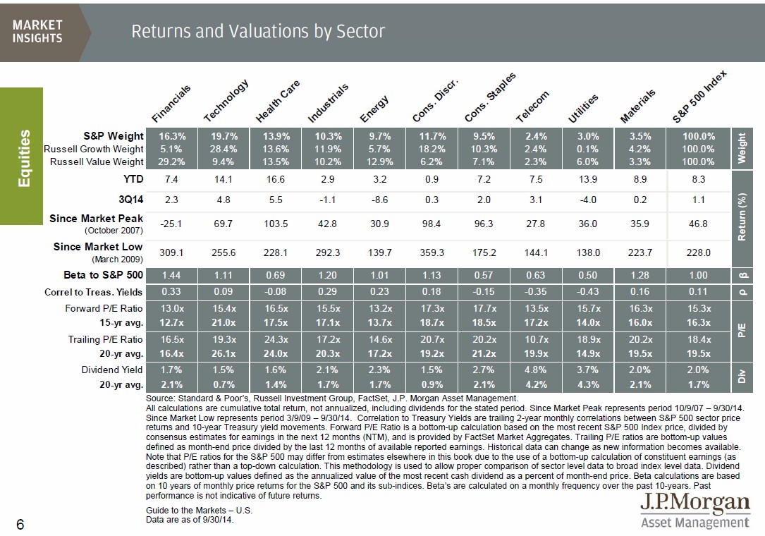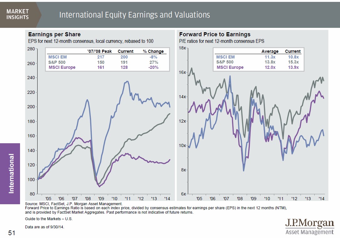 Uma seleção de gráficos e tabelas extraídos do Guide to the Markets 4Q 2014 (30 Set.) do JPMorgan: