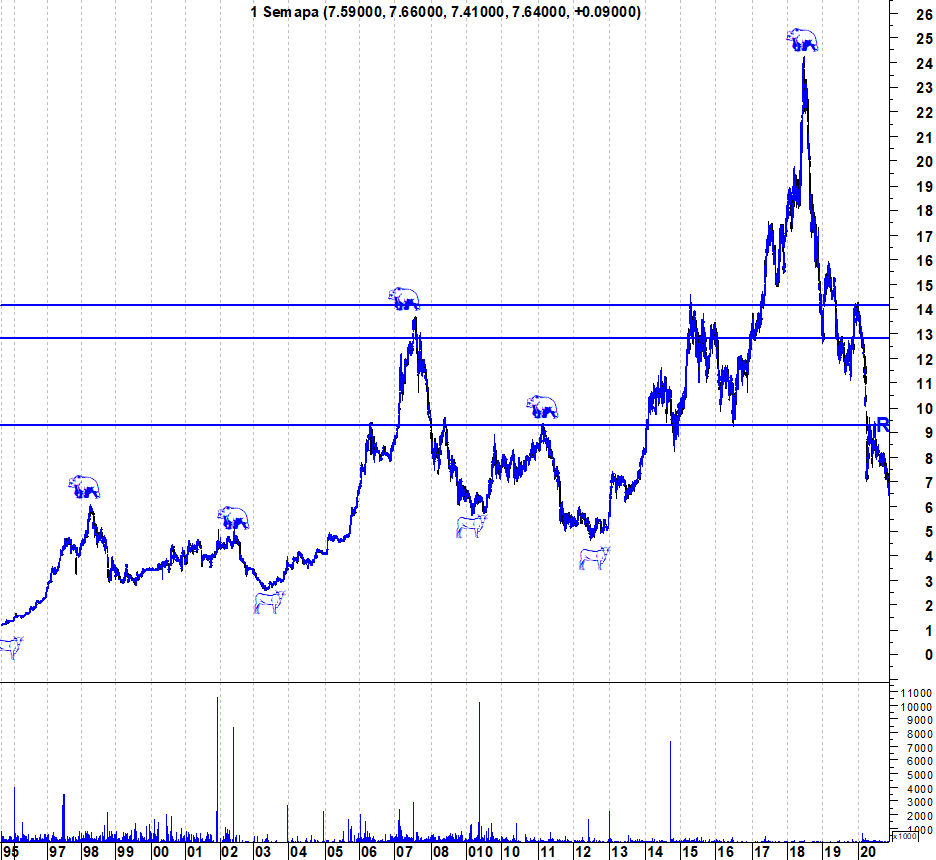 PER<7 em 2020. E, caso se confirme a recuperação dos preços da Pasta e do Papel, a esta cotação, poderemos ter um FW PER de 5.5 a 6. É claro que, a Semapa (Holding) só "vê" o que recebe de Dividendos, os quais, por enquanto, são para pagar Dívida, mas esta, tem diminuído a bom ritmo e tempo chegará em que a única "aplicação" de jeito: Com "Ideias", com "Ousadia" e com "Planos" (como diz o NirSup a propósito da NVG), é retornar o excesso de cash aos acionistas. Há é que ter alguma paciência.