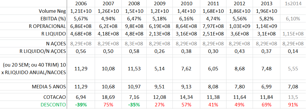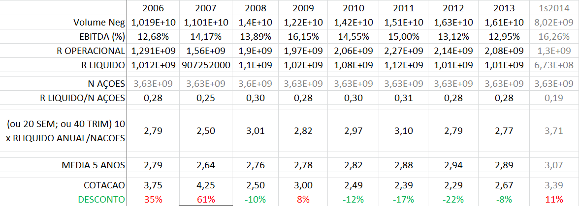 Ou seja em vez de fazer 10 x resultados liq/ação anuais, fiz 20 x...e mesmo assim só teria sido "barata" em 2006 e 2008. Não quero apertar tanto a malha da prudência e da segurança ao ponto de não investir em bons negócios como por exemplo a GALP, percebes?