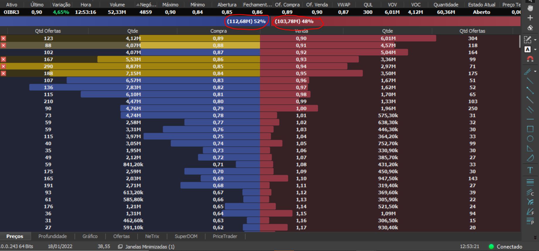 Passou na abertura 1,42M a 0.0852 -7%