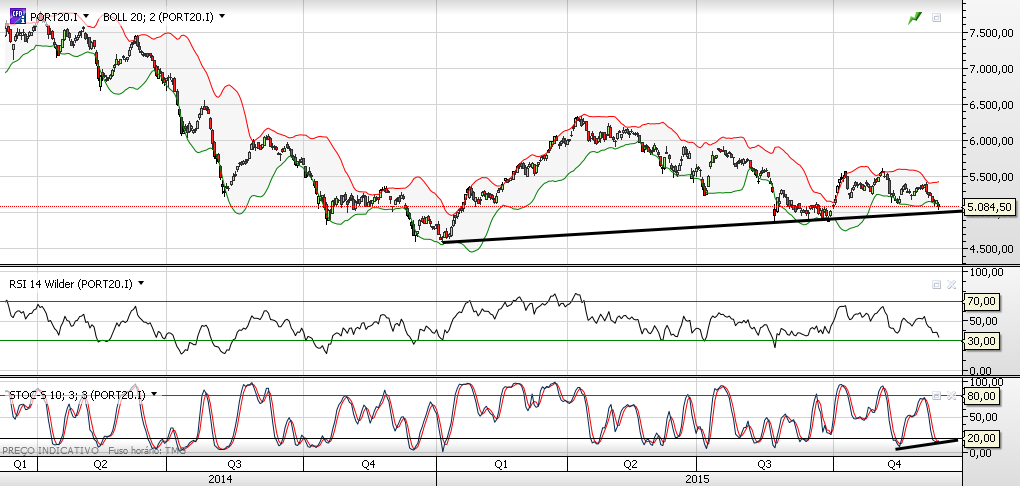 Também pode ser uma cunha que quando rebentar poderá dar festarola. Diria que mais provável para o lado dos ursos. O intervalo de negociação tem vindo a reduzir com o mercado a ficar mais concordante em termos das cotadas do psi. Mas penso ser uma situação temporária. Em 2016 e possívelmente logo no inicio é provável que surjam novas ideias quer dos touros quer dos ursos. Vou esperar para ver para que lado rompe. Se bem que com a fed pode vir um sinal que poderá induzir em erro nos primeiros dias.