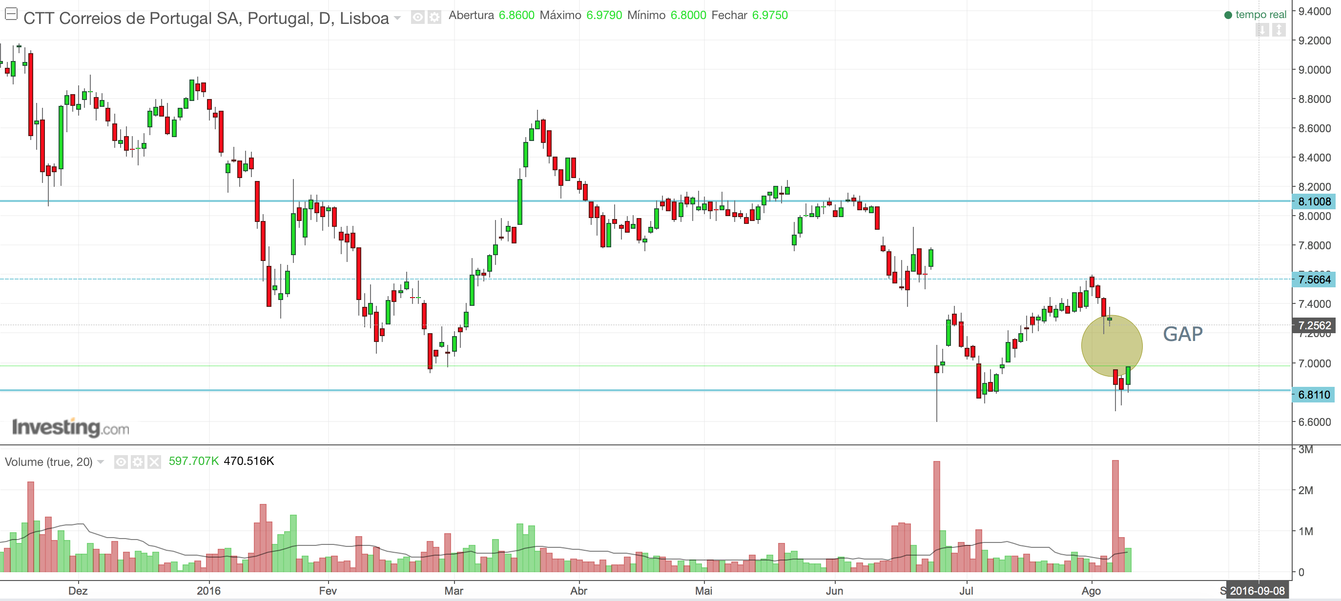 A pergunta que se impõe neste momento é se a ação terá força para fechar o gap de sexta, ou o efeito negativo dos resultados graças ao banco ctt irá continuar a empurrar a ação para baixo?