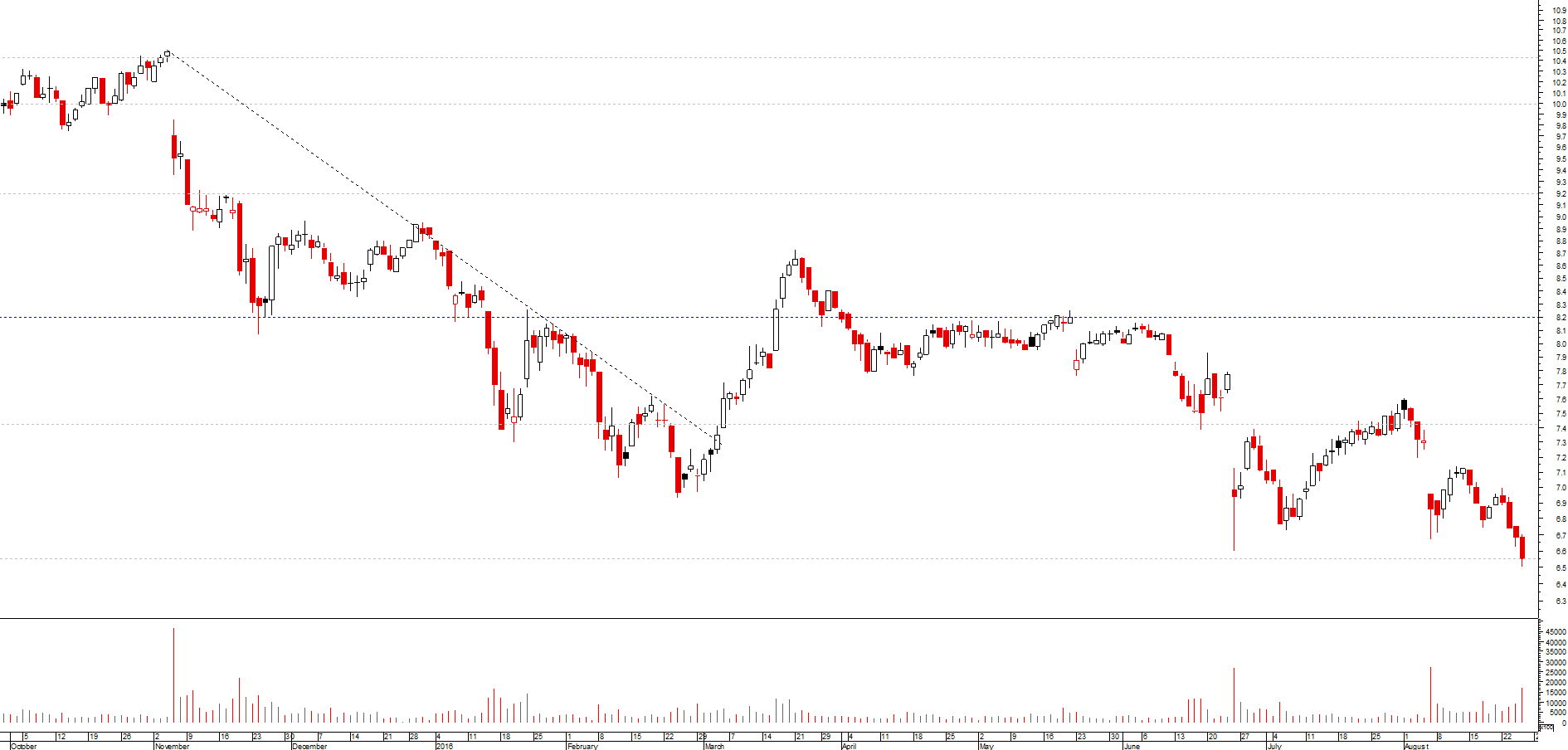 Ao quebrar a zona dos 8€ o Bull Market pode ter terminado sim, mas no gráfico semanal a indicação que nos dá é neutral, enquanto os 6,8€ aguentarem.
