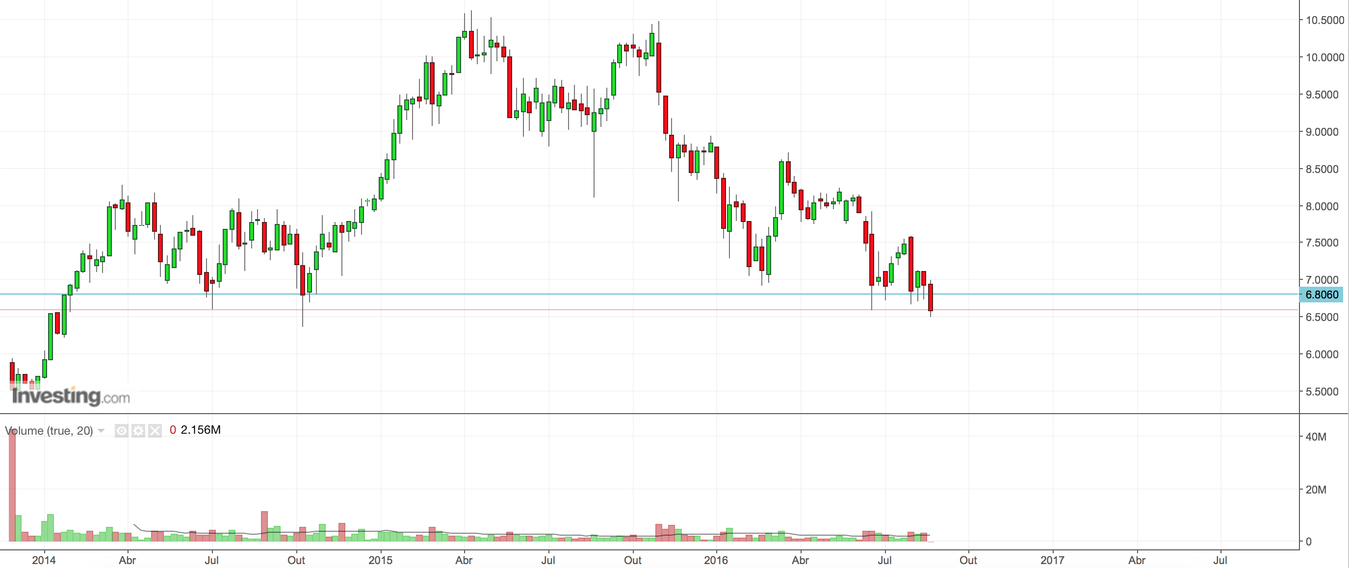 EAGLETRADER20 Escreveu:Enquanto não quebrar o suporte dos 6.60 acredito que pode estar aqui uma boa oportunidade de valorização.