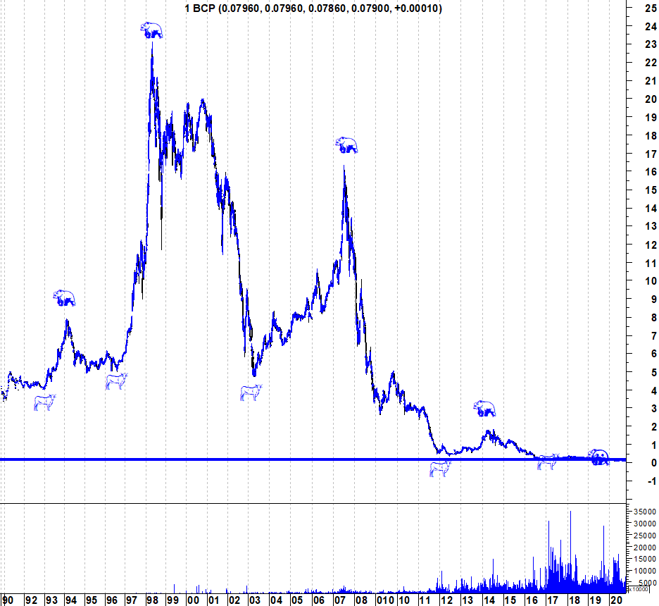 qualquer pessoa que nao conheça e olhe apenas para o grafico do BCP a primeira (e unica) ideia que pode ter é,