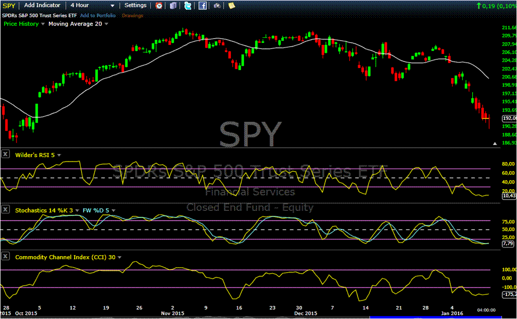 No diário (SPY), os indicadores ainda não se encontram totalmente em sintonia, mas falta pouco. Já no de 4H, a coisa muda um pouco de figura, encontrando-se os mesmos (indicadores) a pretenderem levantar a crista.