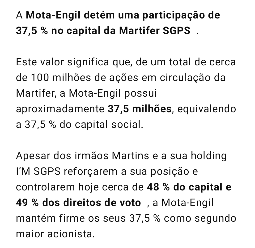 Tanto quanto é do conhecimento público a Visabeira tem apenas 23% do capital da Martifer (não controla a Martifer).