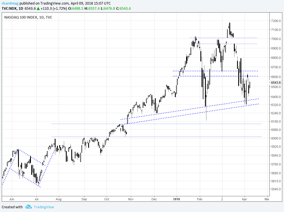 Bom: 1) nao sei ler gráficos, mas desta vez o martelo de ontem nao foi activado! 2) tive uma sorte enorme em o mercado ter virado para baixo , provavelmente pela trade war com a China 3) ainda nao vendi o TW. 4) se a queda se acelerar na abertura dos States, o NDX ainda vai á MM200 nos 6200...