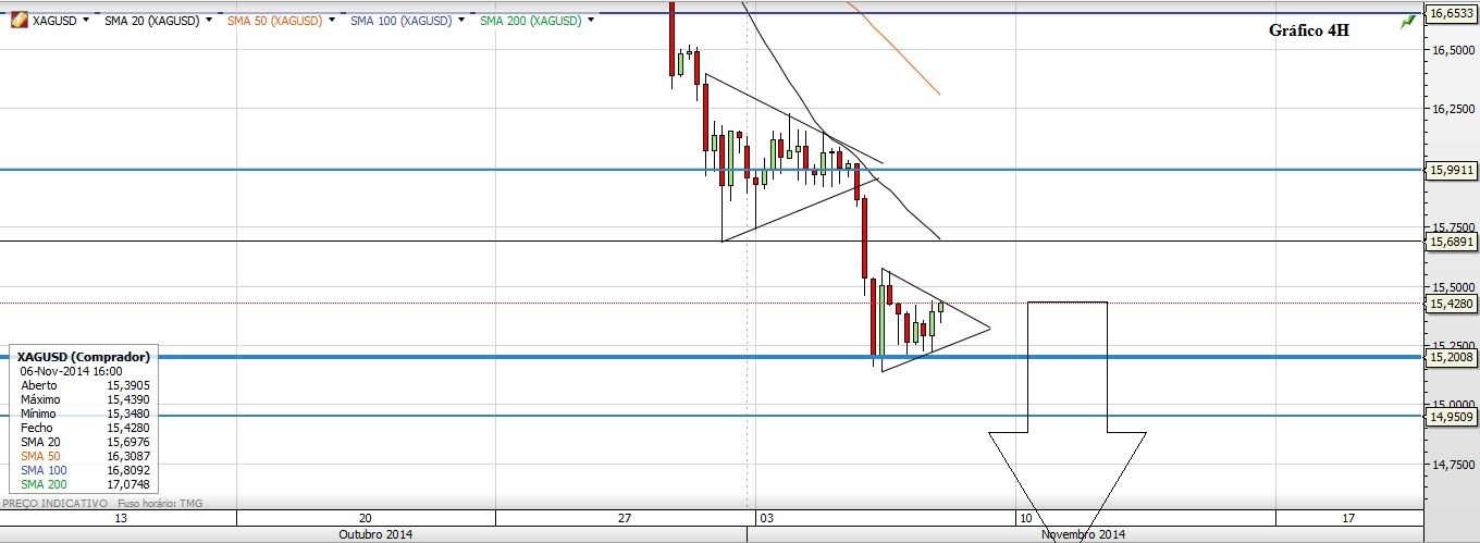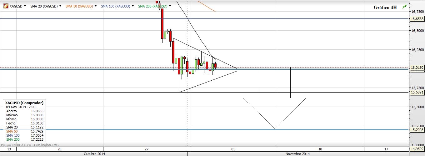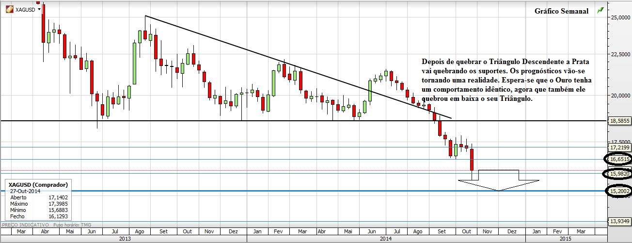 Quanto à Prata esta segue também o seu caminho de queda(livre). Os anteriores prognósticos foram atingidos, segue-se o próximo: 15,20