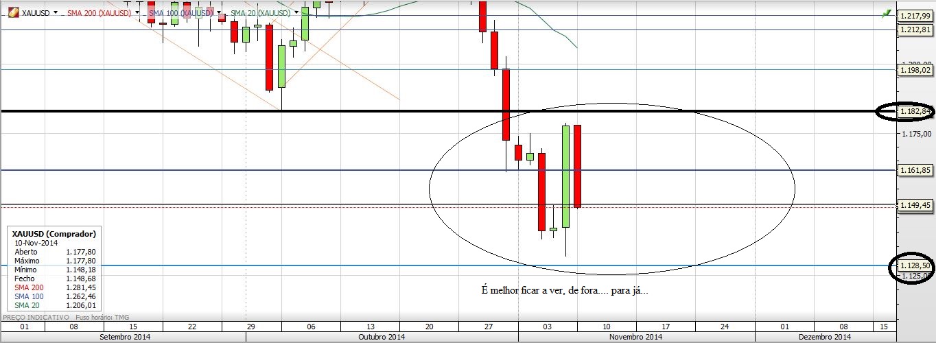Que o Ouro está entre os valores que indica, todos conseguimos verificar. Que ontem o Ouro recuou 50% da última vela também é só olhar e verificar... O que seria mais interessante seria que o Excelso, que também acompanha o Ouro, colocasse aqui a sua ideia e o porquê da mesma, no que ao sentido que considera válido para o Ouro diz respeito. Pois se o Ouro der um passo para a esquerda e eu vier relatar «olha, o Ouro deu um passo para a esquerda» isso não terá lá muito interesse (na minha maneira de ver as coisas...)