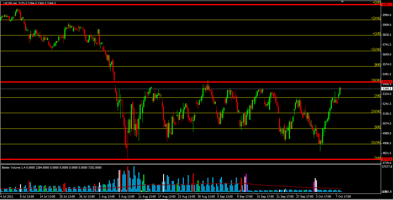Assim como os seus congéneres europeus, o principal índice britânico segue a recuperar de mínimos de 2012 atingidos em Junho e, como podem reparar no gráfico, encontra-se também numa zona muito rica em suportes e resistências, a maioria deles apenas ruído sem muita relevância.