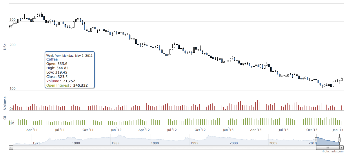 ptbr13 Escreveu:Há um amigo que compra e vende café e não sabia desta quebra brutal. Alguém sabe quanto caíu o café em euros, desde o pico de 2011?