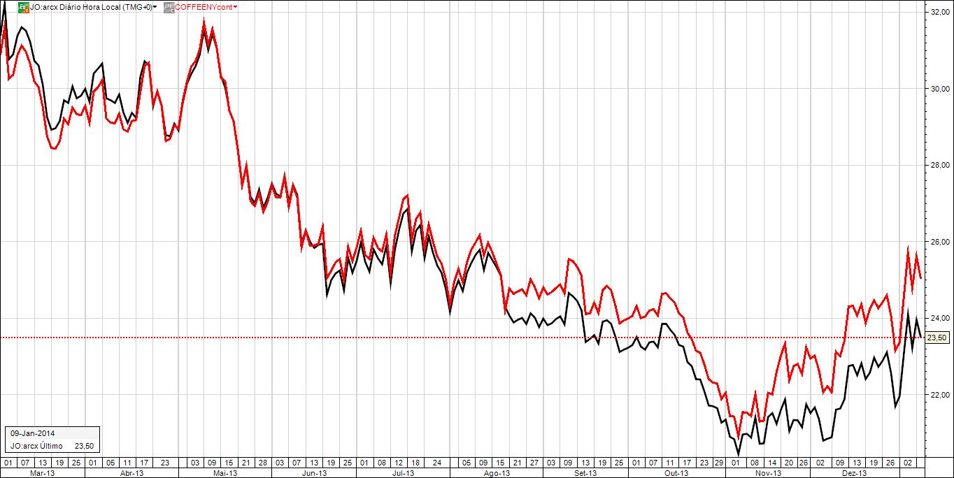 Podes seguir a cotação continua no GB com o seguinte código: COFFEENYcont