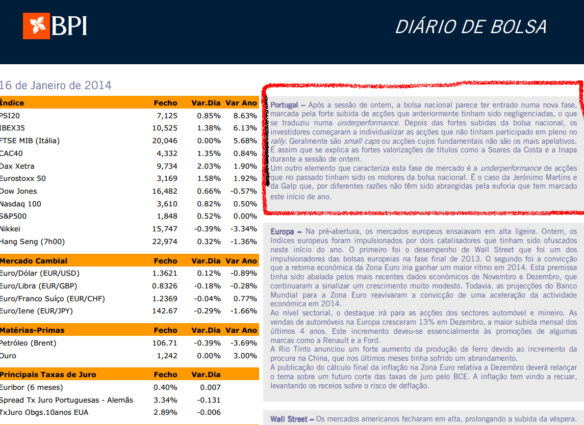 As opiniões expressas baseiam-se essencialmente em análise fundamental, e na relação entre o valor de mercado dos ativos e as suas perspectivas futuras de negocio, como tal traduzem uma interpretação pessoal da realidade,devendo como tal apenas serem consideradas como uma perspetiva meramente informativa sobre os ativos em questão, não se constituindo como sugestões firmes de investimento
