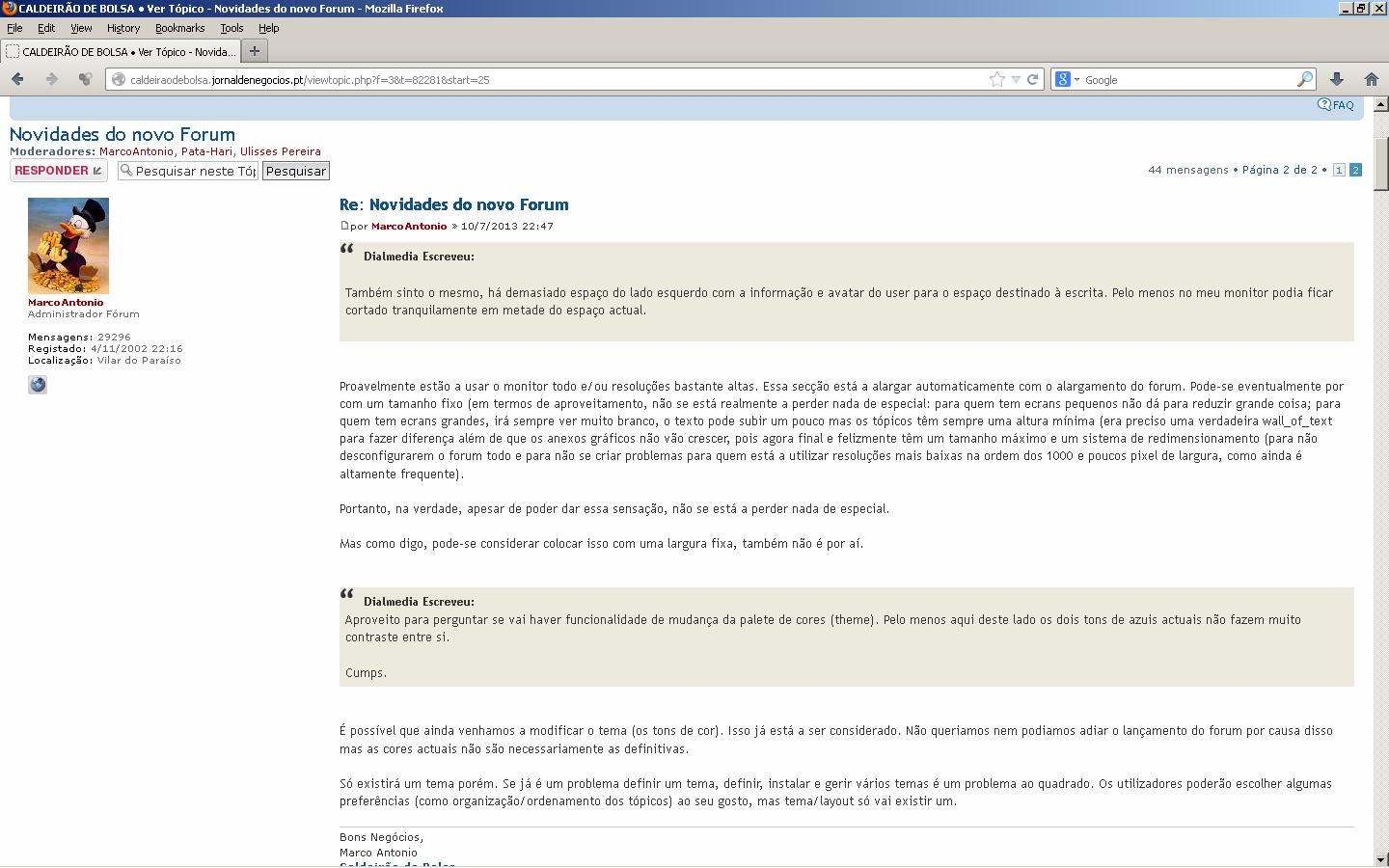 Como já referi várias vezes, pode-se fixar a largura para não alargar com o forum, o que deixará a coluna muito grande quando se alarga o browser e/ou se tem monitores com elevadas dimensões/resoluções.