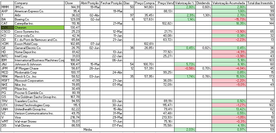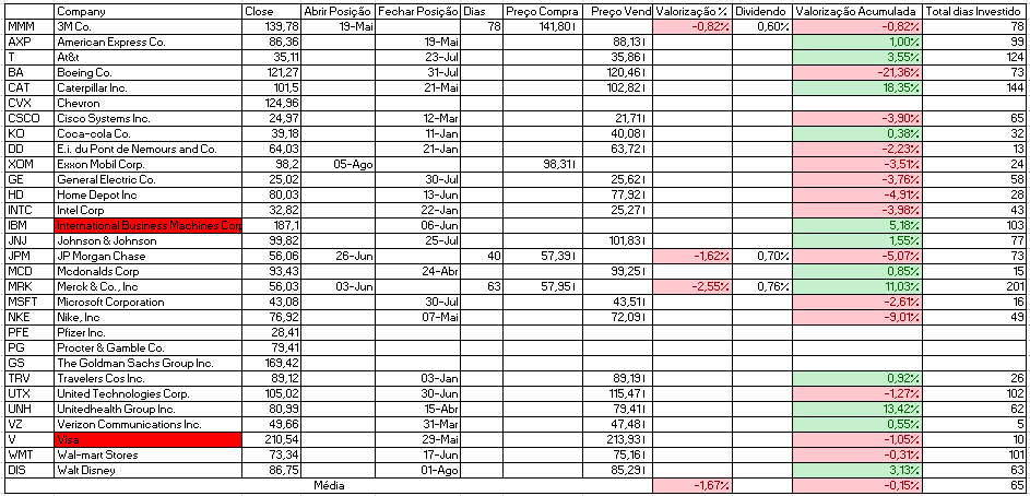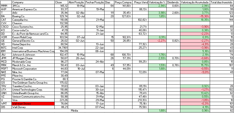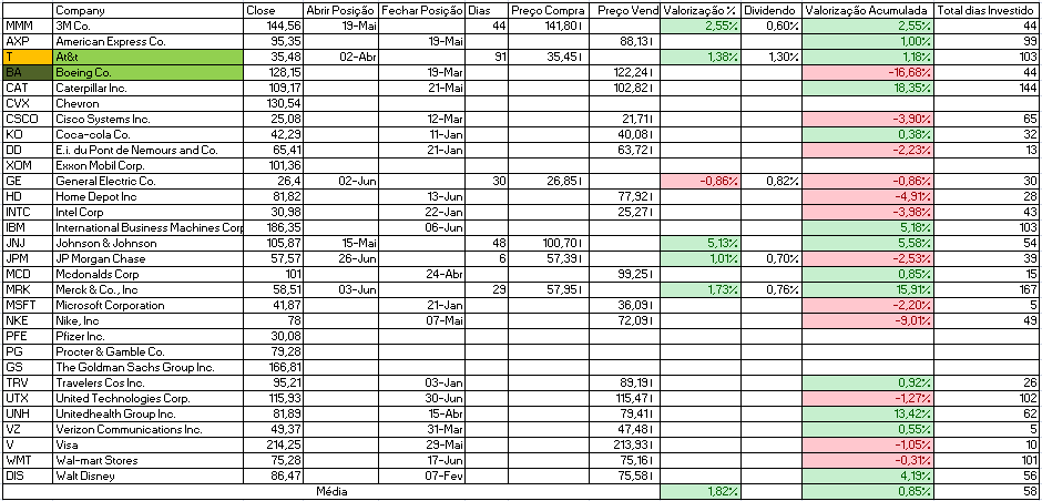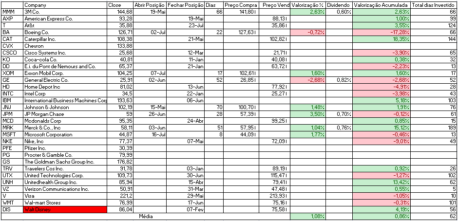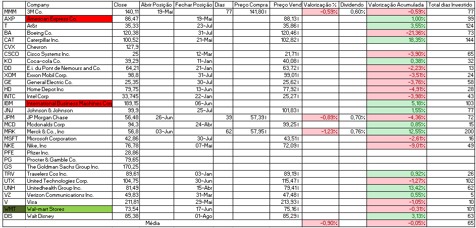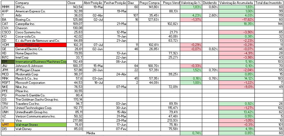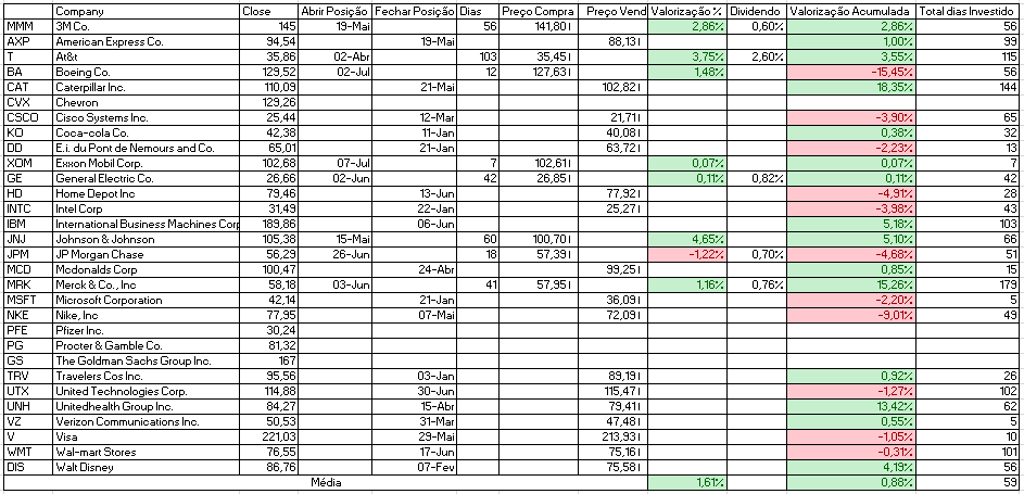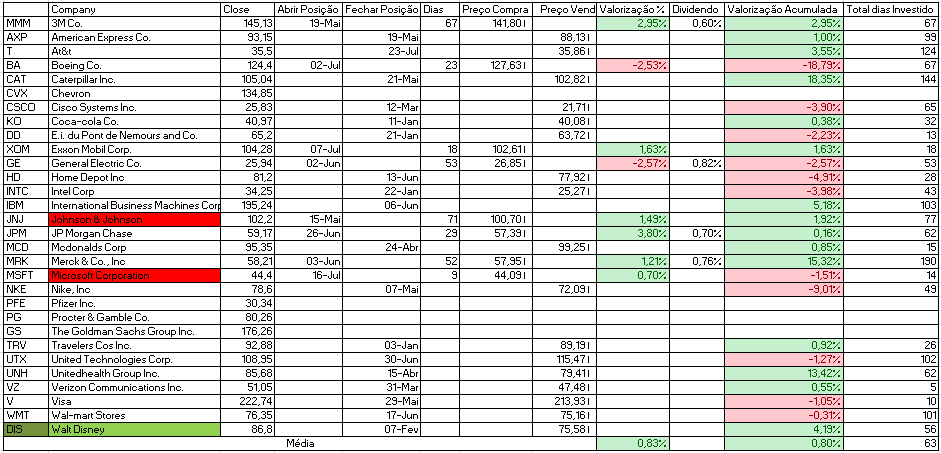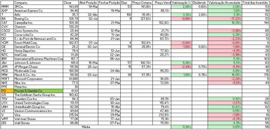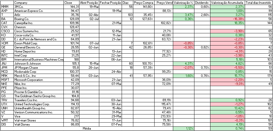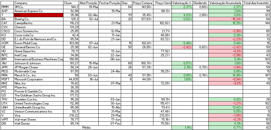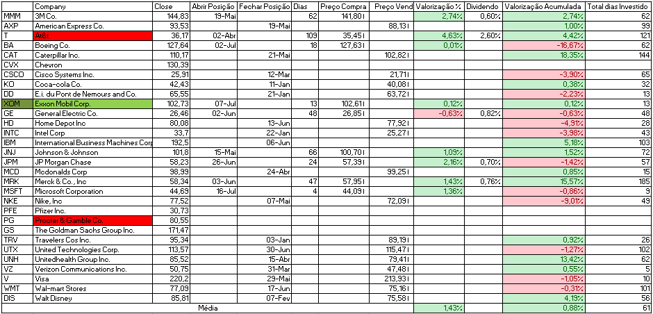 Para o DJI é a venda da AT&T e PG, e compra da Exxon (que deveria ter vendido na sexta-feira, mas tal não me foi possivel