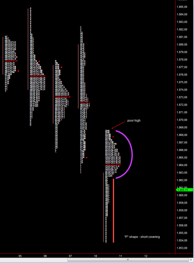O profile é um claro "P" o que indica short covering. Esta formação indica-nos que muito provavelmente iremos ter os preços a testar valores mais abaixo.