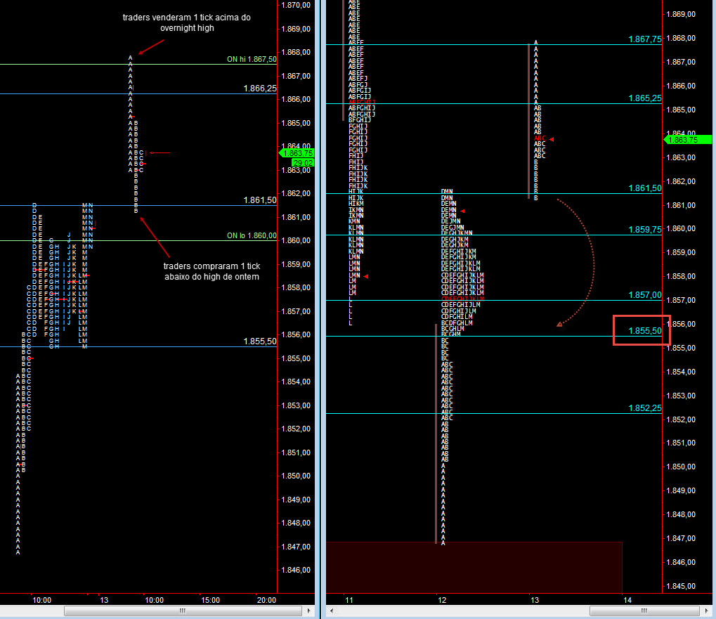 Trader venderam 1 tick acima do high do overnight e compraram 1 tick abaixo do high de ontem.
