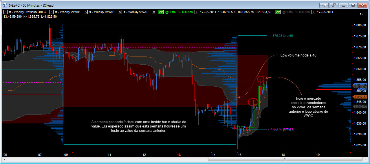 Olhando primeiro para o performance semanal, semana passada o mercado fechou com uma inside bar e abaixo do value.