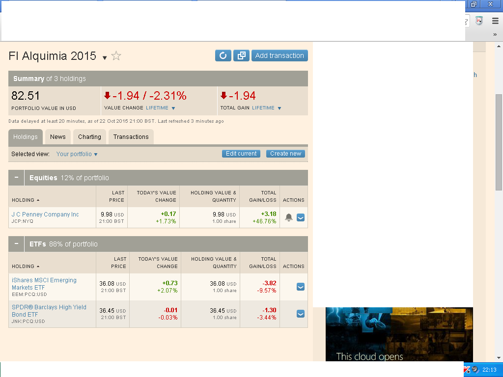 FI Alquimia 2015: sem hedge, só com 3 activos (rigorosamente, são dois: jcp e "activo-mistério") e com pura gestão passiva.