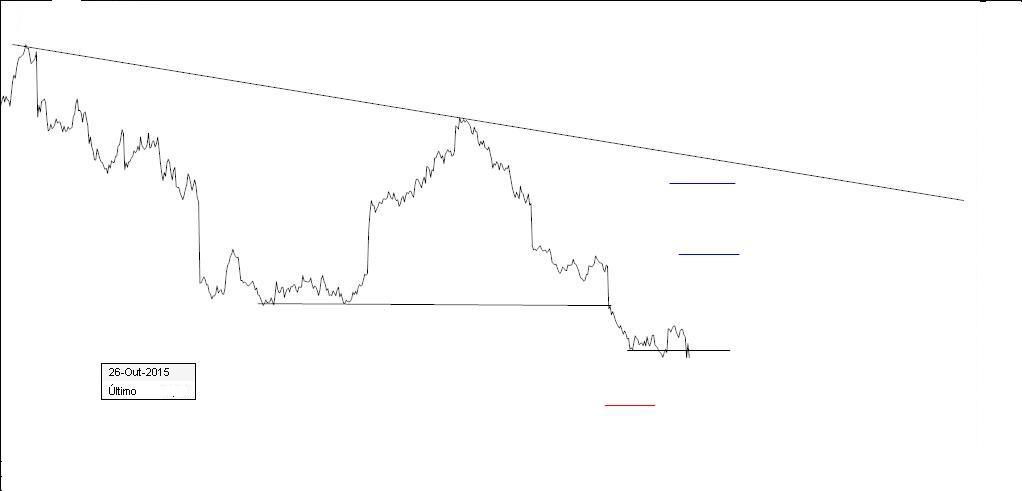 malvoisin Escreveu:acrescentei umas linhas ao teu gráfico para ajudar à festa. desenhei-as à vista com o rigor possível, seja como for, de certo viste-as, apontam para o canto inferior direito da tua zona, ou ligeiramente fora dela. será de esperar uma banhada aos longos, tanto mais que a tendência por enquanto é descendente (indo abaixo do último mínimo relevante, tal como aconteceu no caso anterior, ainda que de forma menos pronuciada), para que então inicie um novo movimento ascendente? (exemplifico o que quis dizer com as linhas laranja)