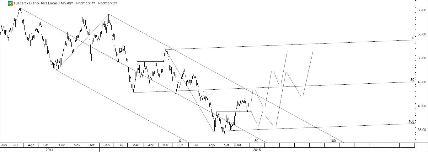Ainda estou muito tenro nisto dos garfos,mas podes confirmar que essa ideia que descreves não é mais do que início da onda 3, movimento que quase sempre surge após o rompimento / quebra de uma lt seguido de um pivô a direccionar o sentido do movimento, a excepção é quando acontece o tal movimento que julgo ser o que o alquimista denomina de banhada (como só ainda li as primeiras páginas do tópico não afirmo ☺). Mas também sempre do lado do rompimento /quebra da lt.