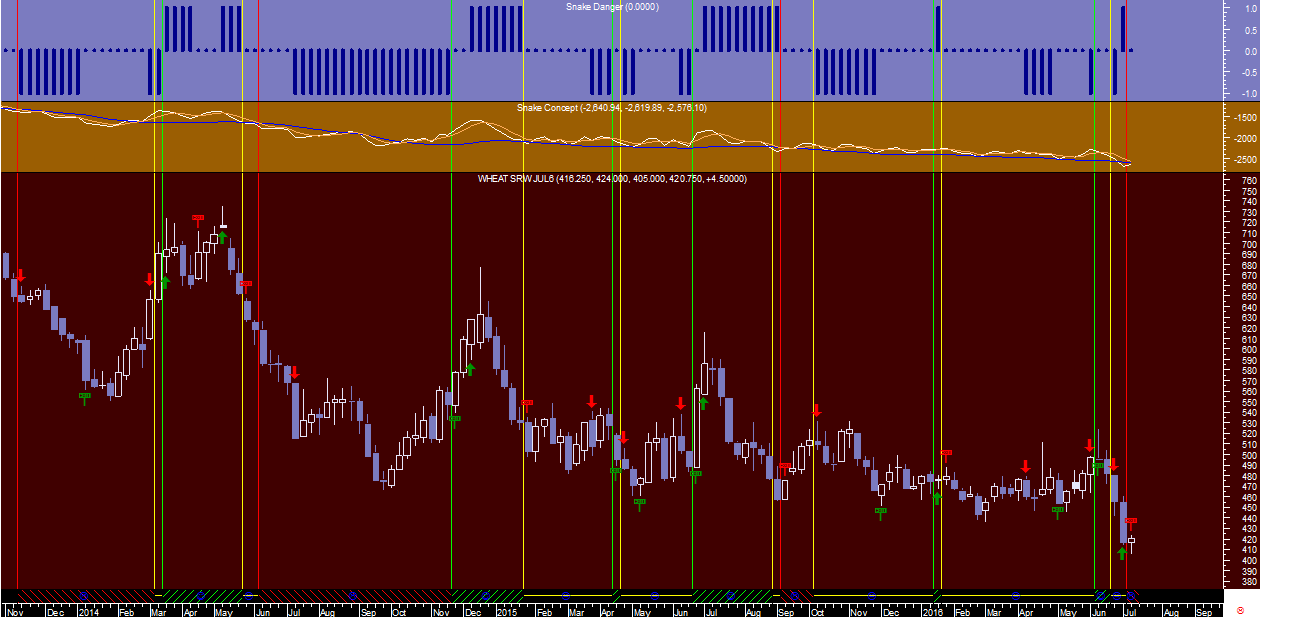 Confirmando o possível cenário ontem aqui referido no caso da Soja, confirma-se que a “Cobra” acabou de disparar um sinal de venda na escala diária.