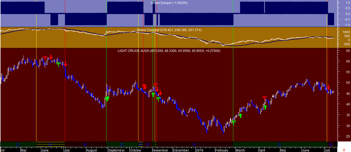Na realidade o programa de trading alterou o seu sinal de compra, precisamente disparado no conjunto diário/semanal há cerca de 4 meses atrás nos 36,36 dólares por barril, desta vez a fechar para a posição por volta dos níveis atuais que se encontram a cotar na zona dos 45,40 o que corresponde na prática a uma trade com um ganho a rondar os 9 dólares/barril.