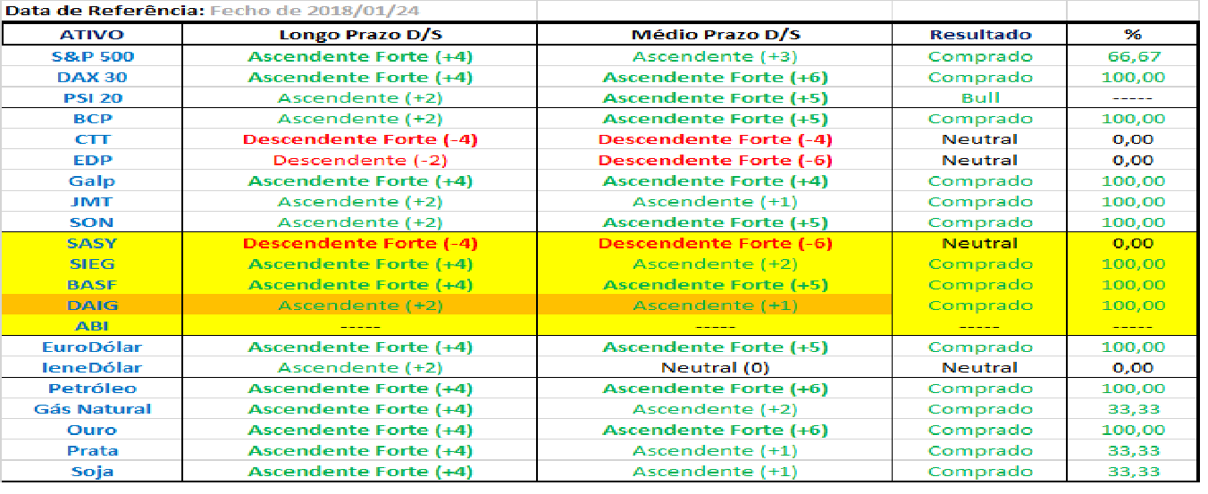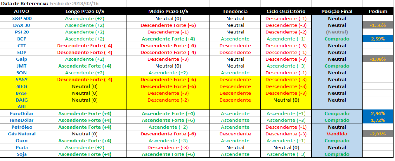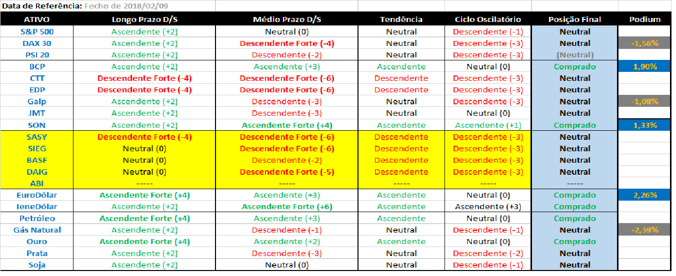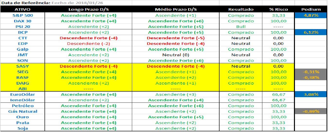 Quanto aos gráficos, para além dos quadros semanais de controlo posicional semanal, ficam os relativos a sistemas de trading no BCP, Daimler e Soja.