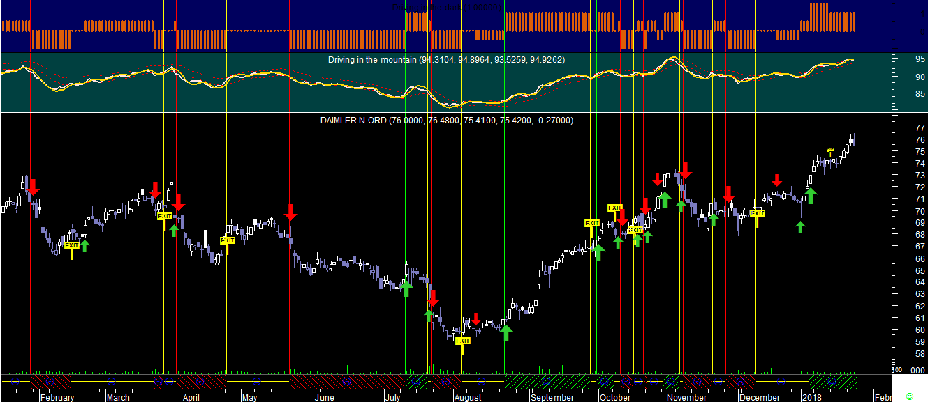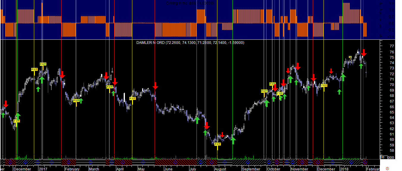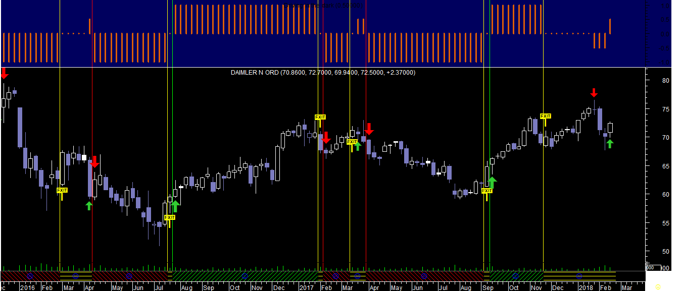 Junto gráficos dos sistemas de curto prazo diários, näo só da Soja como também duma açäo alemä representativa do Euro Stoxx 50, refiro-me à Daimler.