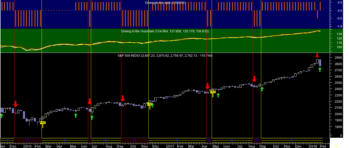 Para além dos quadros de controlo comparativos habituais, onde de forma curiosa destaco o exemplo do S&P 500, apesar da grande tareia e da parte emocional negativa que sempre deixa no mercado uma correçäo acentuada, a passar de um rating de força de +1 na semana passada para +4 à data presente equivalendo a melhores oportunidades de comprar agora, deixo também dois gráficos de sistemas com açöes tugas na EDP e Sonae e ainda o caso curioso do já referido S&P 500 com dois sinais sucessivos na escala semanal no sistema oscilatório Driving in the Dark: um de venda no início da semana que terminou e outro de compra na semana que vai entrar.