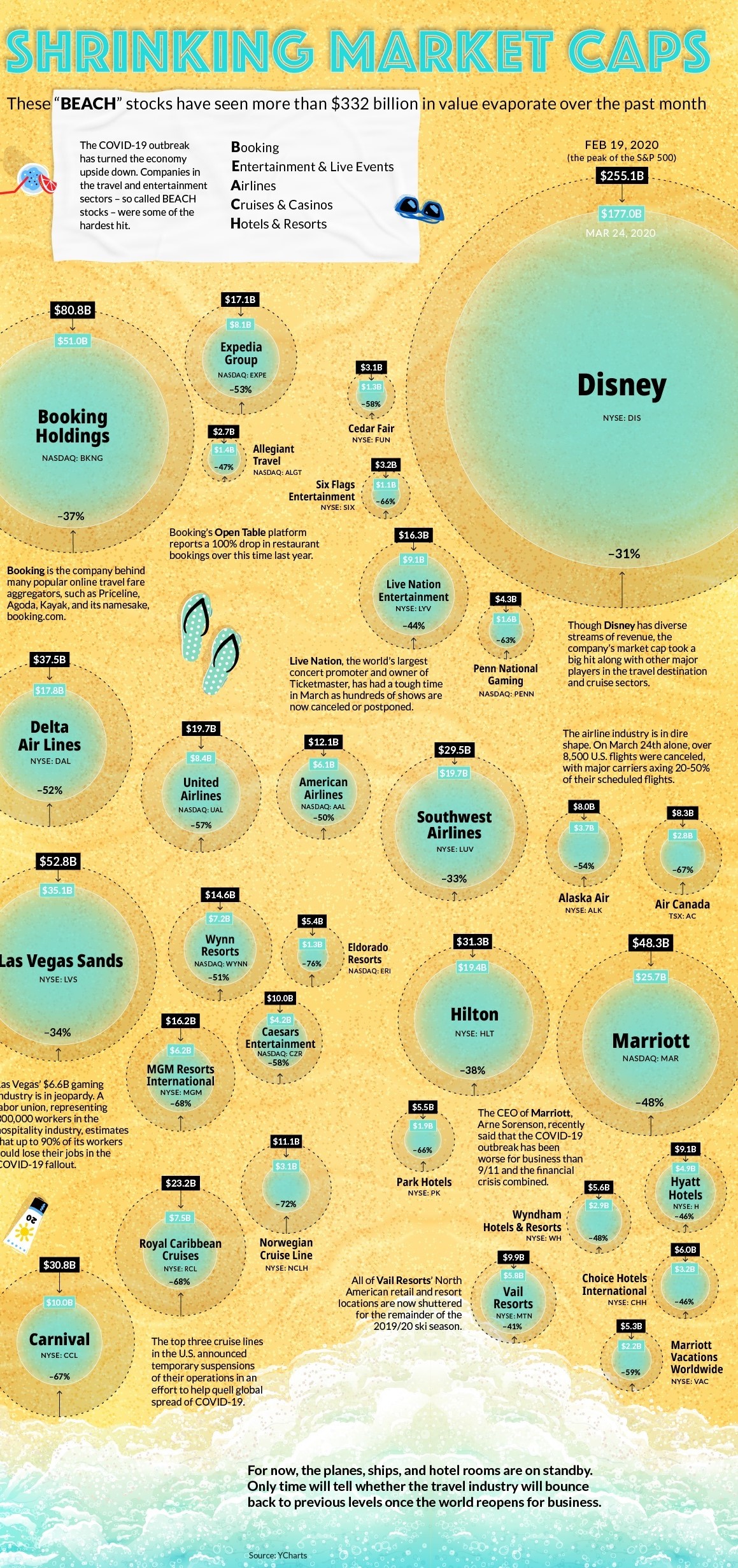 Aprendi hoje, este novo acrónimo no VisualCapitalist: BEACH (Booking, Entertainment, Airlines, Cruises & Casinos, Hotels and Resorts), faltando apenas a Indústria do petróleo para abarcar os mais massacrados.