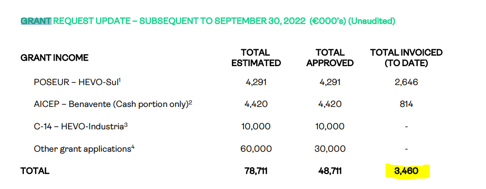 As entradas/receitas resultam de warrants, que implicam a diluição futura de capital, e subsídios do Estado.